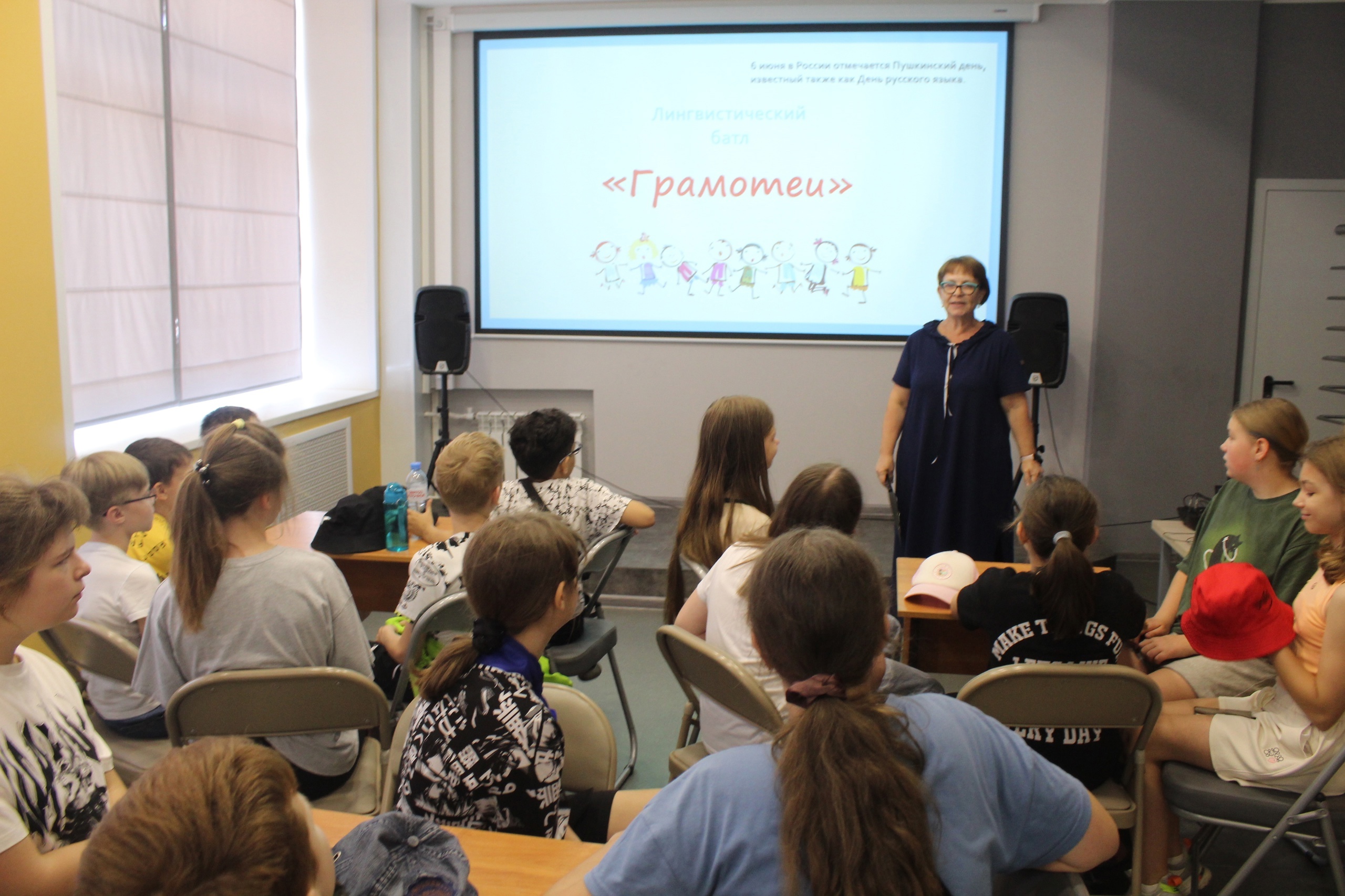 В преддверии Дня русского языка (Пушкинского дня в России) в Центральной городской библиотеке имени Л.Н. Толстого прошёл лингвистический батл “Грамотеи” – интеллектуально-развлекательная командная игра, включающая ряд оригинальных конкурсов из различных разделов русского языка.