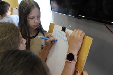 Ребята отгадывали фразеологизмы и устаревшие слова из сказок, представляли себя экскурсоводами, читающими магазинные вывески иностранным гостям, играли в другие лингвистические игры, где смогли проявить не только грамотность, но и смекалку.