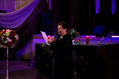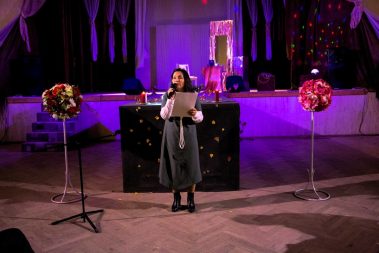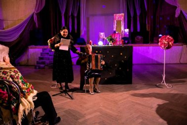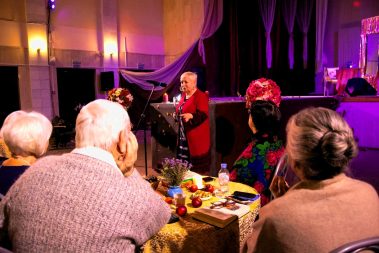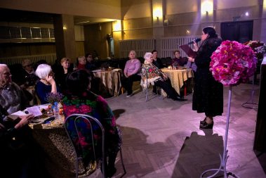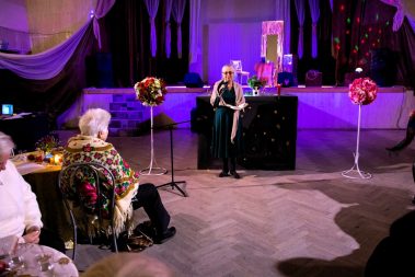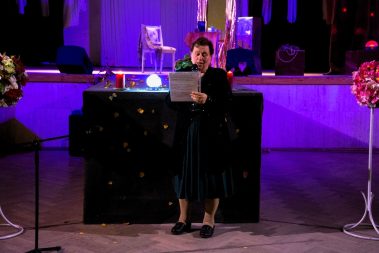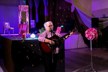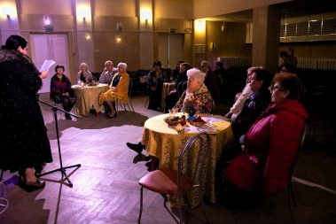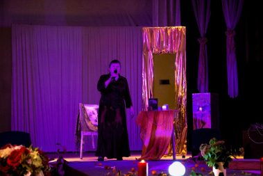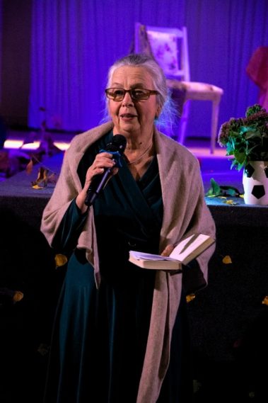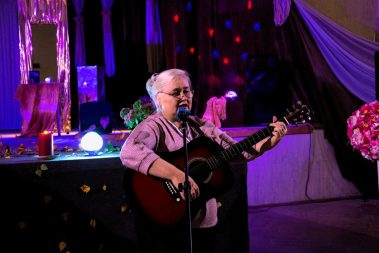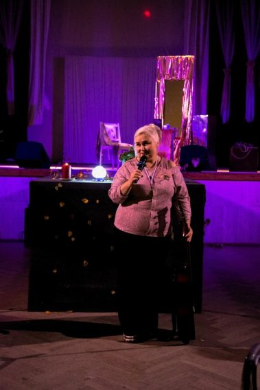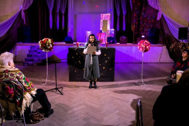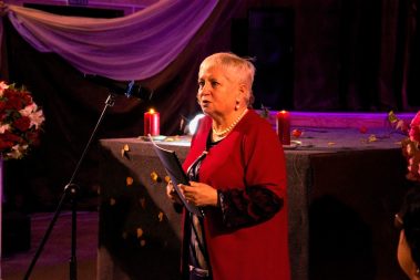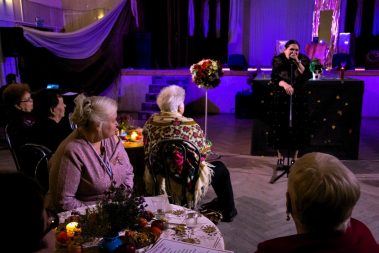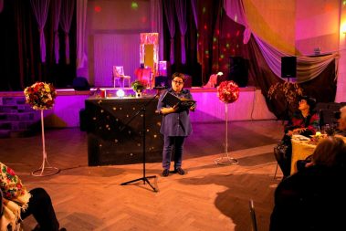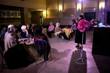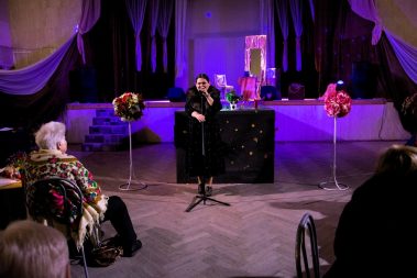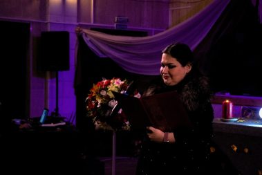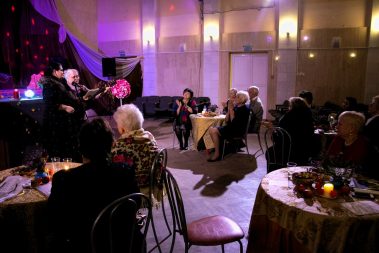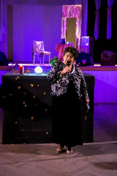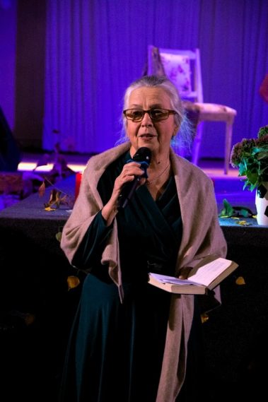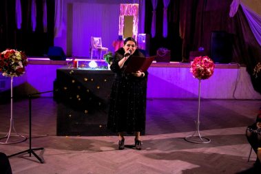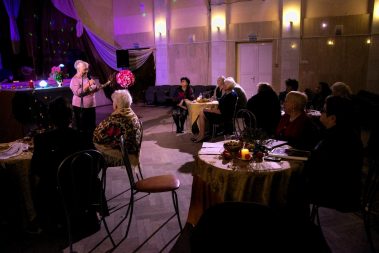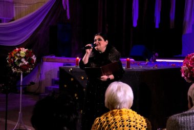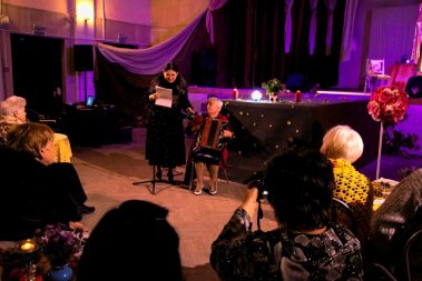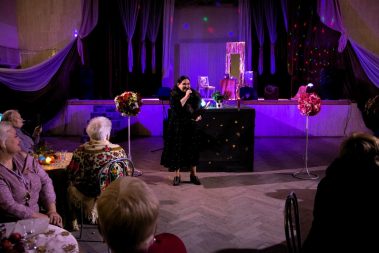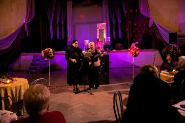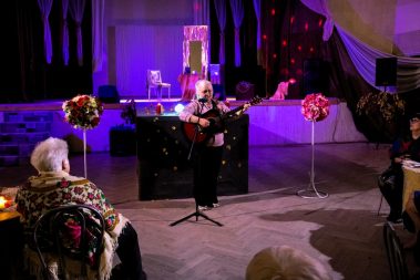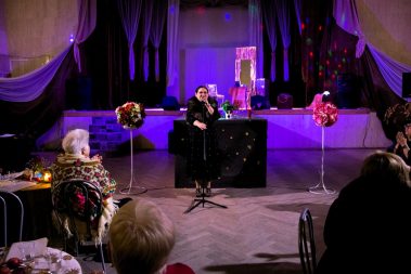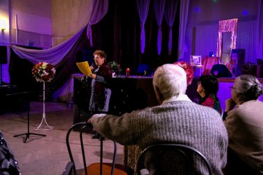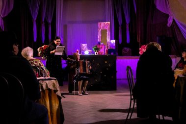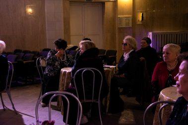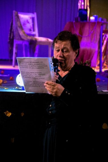 Вечер прошёл в форме камерного концерта. Гости и участники сидели в небольшом зале. Фоном звучала классическая музыка и горели свечи.