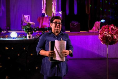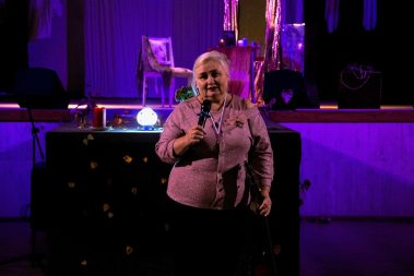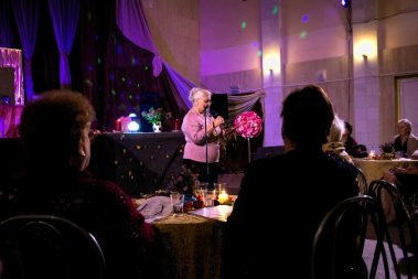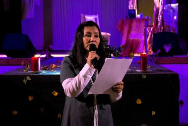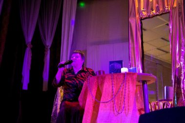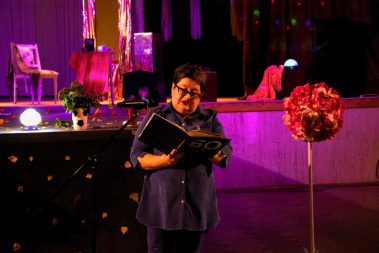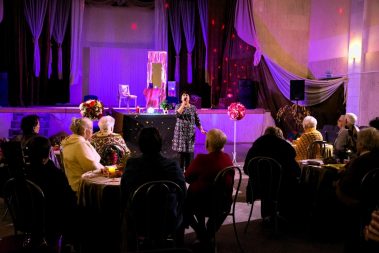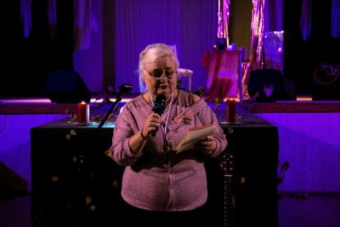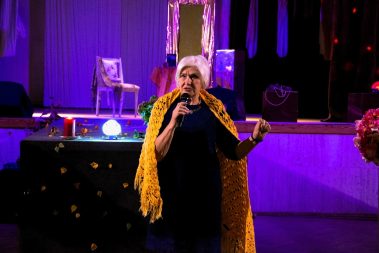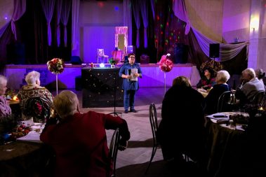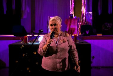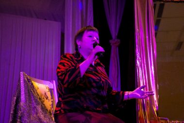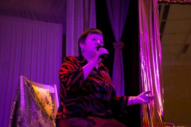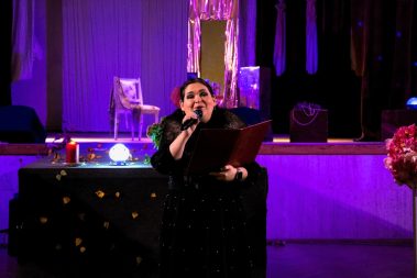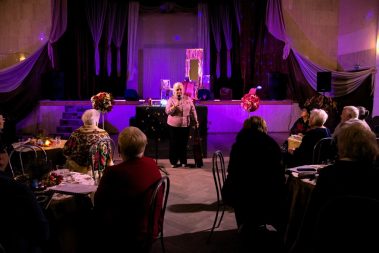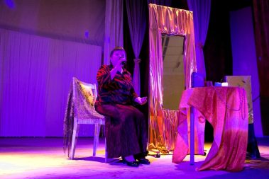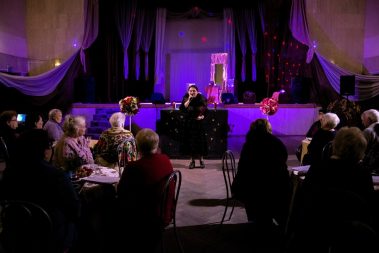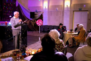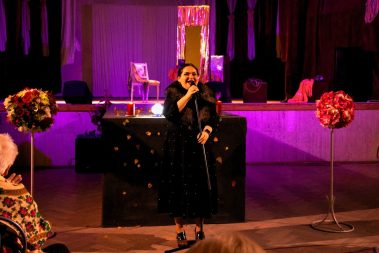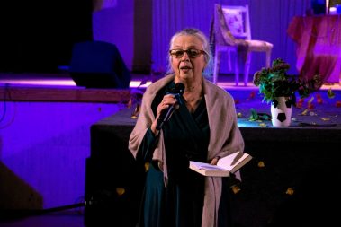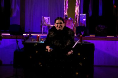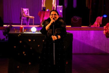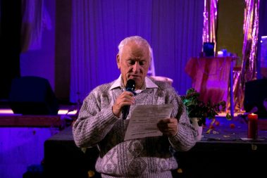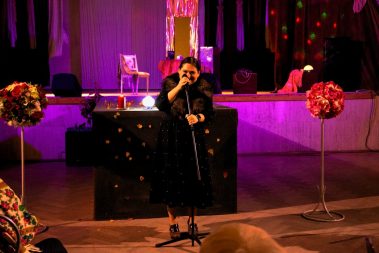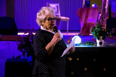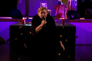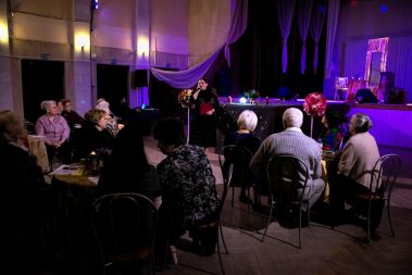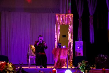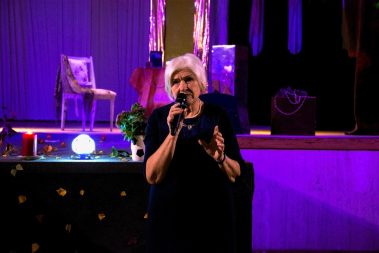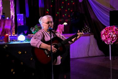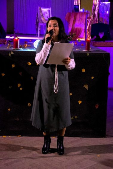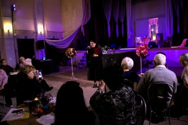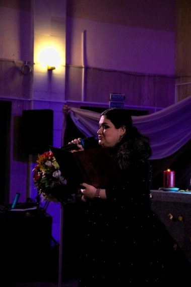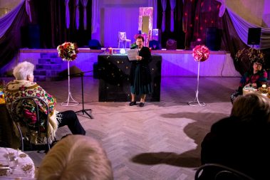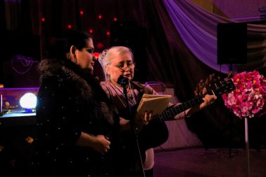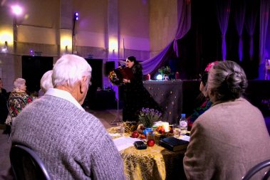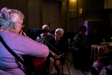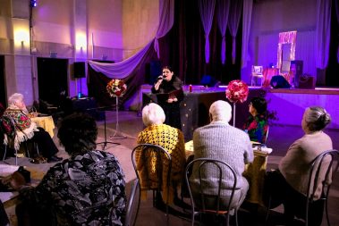 Вечер прошёл в форме камерного концерта. Гости и участники сидели в небольшом зале. Фоном звучала классическая музыка и горели свечи.