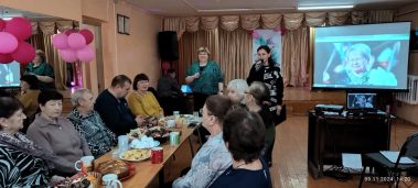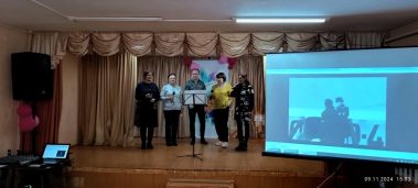 На литературно – музыкальный час “Песня моя – Россия”, посвящённый 95-летию со дня рождения А. Н. Пахмутовой и Л. Г. Зыкиной мы пригласили членов союза пенсионеров села Зайцево.