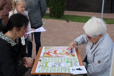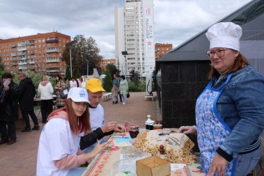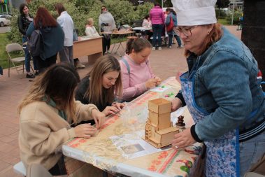 Для любителей спорта была организована специальная активная зона на площадке “Дружи со спортом, как Толстой!”, где все желающие играли в городки, народную игру “Калечина – малечина”, шахматы, старинные настольные игры “Гусек” и “Комические скачки”.
