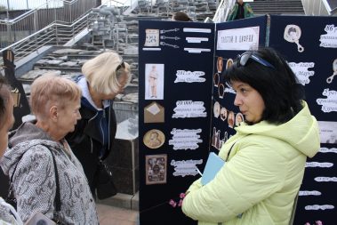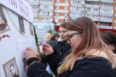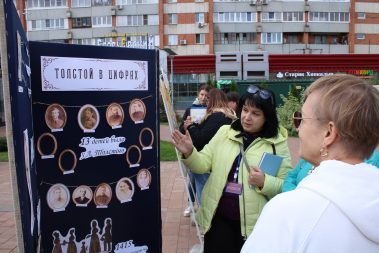 На площадке “Я вновь открываю Толстого” была представлена выставки “Толстой – всегда современник”, “Яснополянская богиня”, а также логические игры, викторины и выставки.