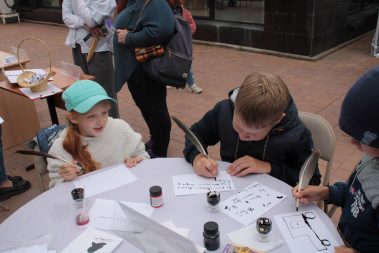 В творческой мастерской можно было научиться писать гусиными перьями, принять участие в мастер-классе по флористике “Яснополянское разнотравье” и изготовлению “Филипка”, полюбоваться композициями народных кукол “Яснополянское чаепитие” и “Народные гуляния в Ясной Поляне”, познакомиться с фотовыставкой “Моя Ясная” Ольги Евсюковой.