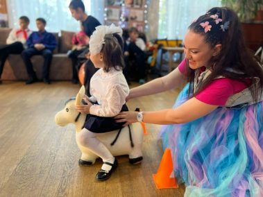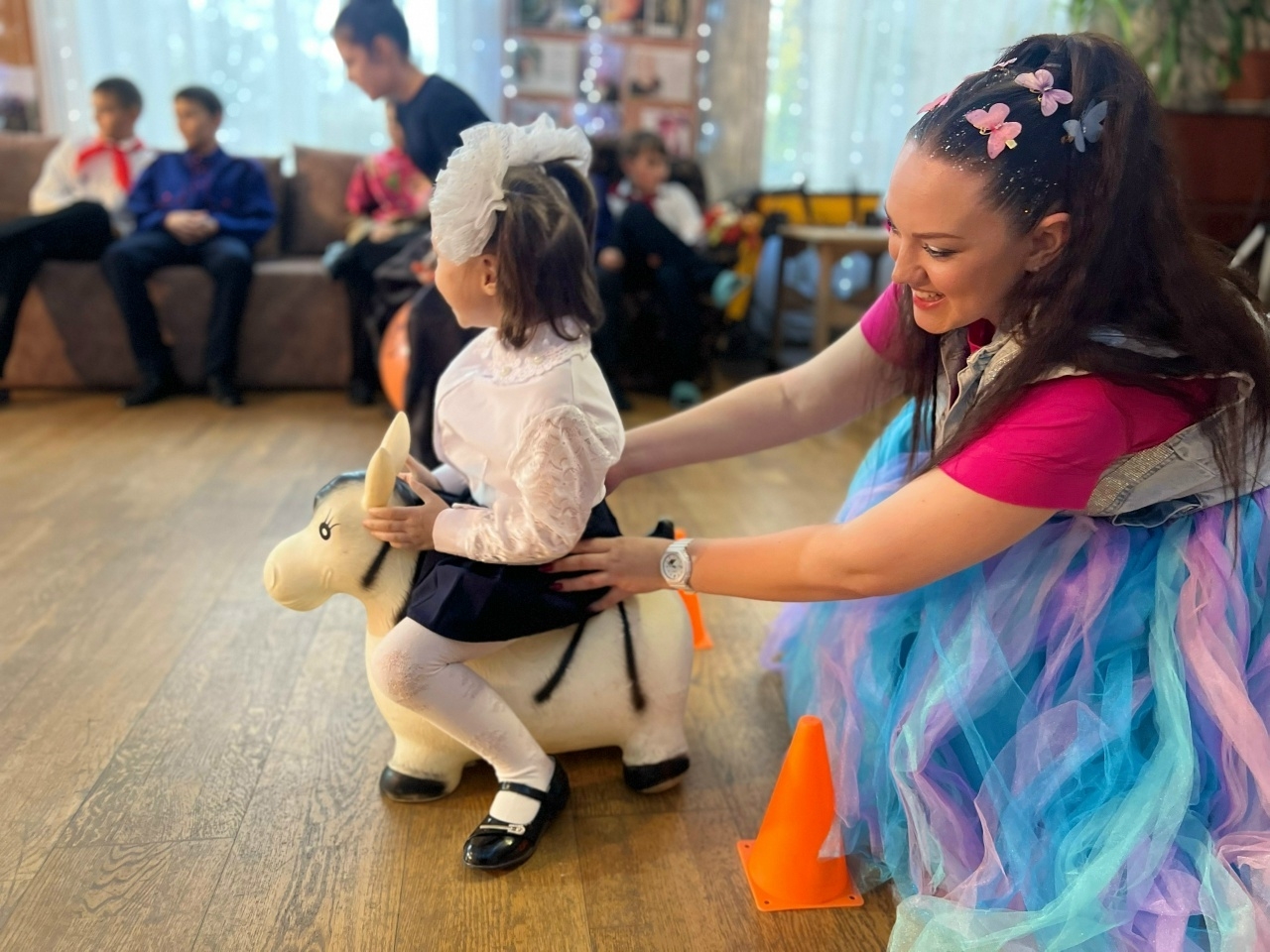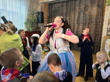 Команда сотрудников Дома Культуры провела насыщенную развлекательную программу, в которую вошли красочные и веселые игры, танцевальные флешмобы и конечно же, песни, которые пел весь зал. Ростовая кукла обаятельного Зайца подарила детям массу положительных эмоций.