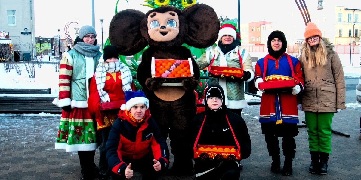 Ребята поздравили жителей и гостей города Тулы с наступившим Новым годом и Рождеством Христовым, а так же подарили всем пришедшим на гуляния, самый популярный в новогодние праздники фрукт, мандарин.