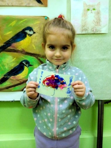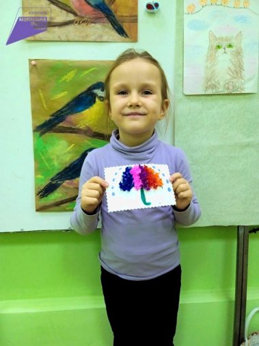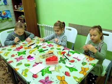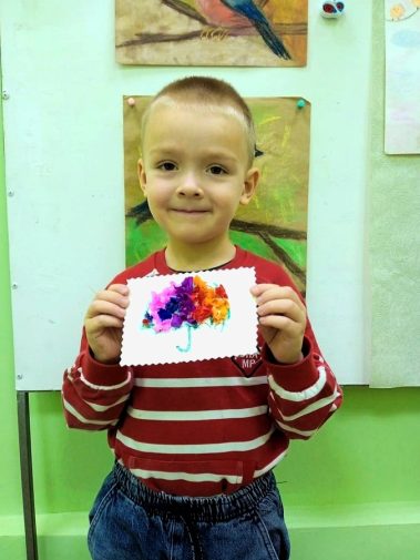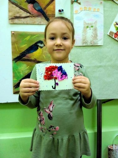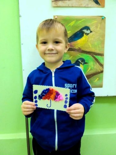 В рамках мастер-класса ребята сделали зонтик в технике торцевания.