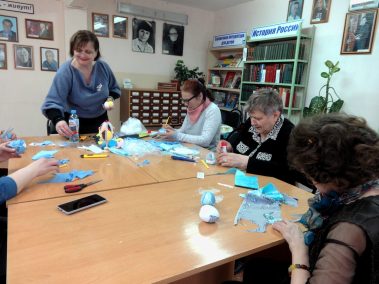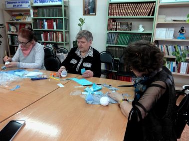 В Городской библиотеке № 6 состоялся мастер-класс по изготовлению пасхальных яиц в технике кинусайге – аппликации из ткани с дизайнером Светланой Барабановой.