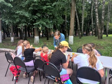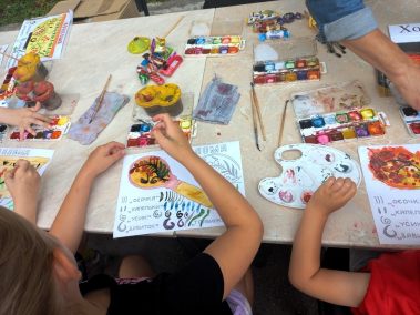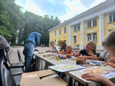 Руководитель ИЗО-студии “Радуга” Л.М.Агапова провела мастер класс по росписи деревянных изделий (ложка,медовая чашечка)в стиле хохломской росписи