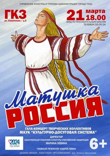 В этом отчетном году основной линией концерта станет олицетворение образа России, как единой матери русского народа. Поэты и писатели нашей страны давно определили чувство родства народа и Родины словами “Мать-Россия”, “Русь-матушка”, “Родина-мать”. Больше теплоты звучит в сравнениях родины с матерью в фольклоре и литературе: “Родная сторона – мать…” Это и другие обращения служат примерами, подтверждающими отношение к Отчизне, как к родной и любимой матушке.