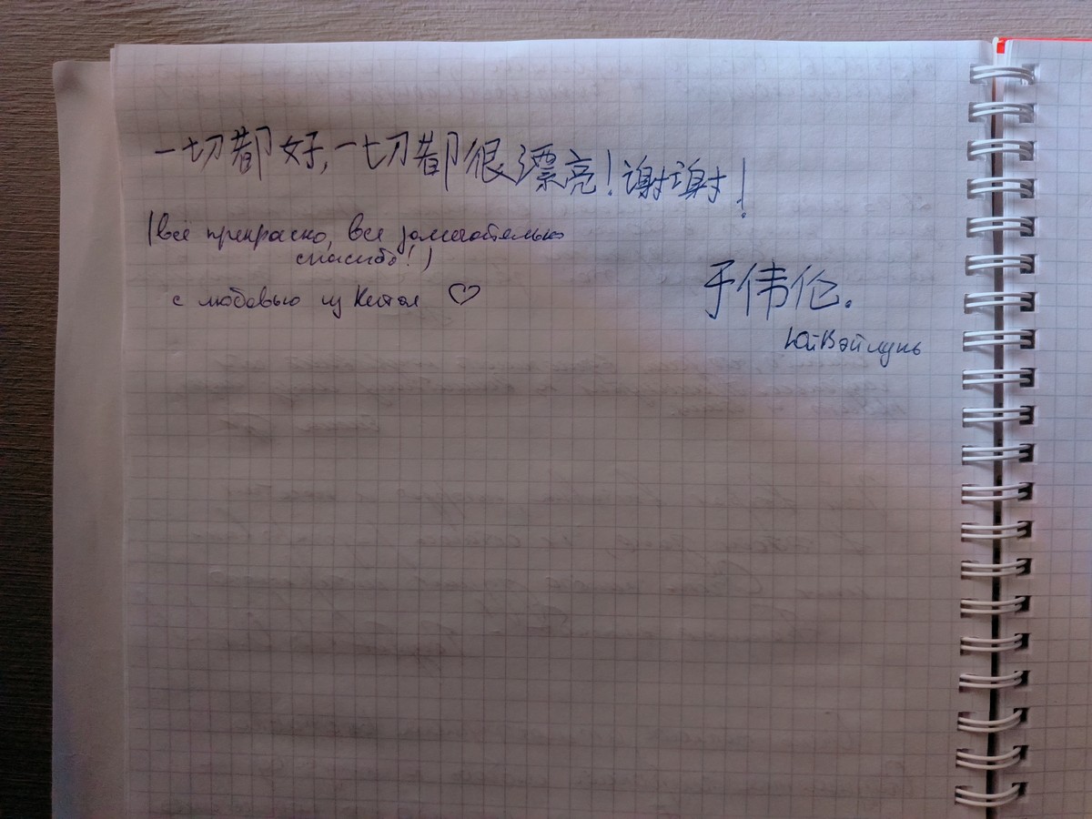 Красота не требует перевода: на днях в нашей книге отзывов появилась теплая благодарность на китайском языке. Нам очень приятно, что история тульских модников откликается в сердцах гостей из самых разных уголков мира.