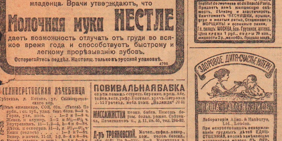 Напомним, что слово “реклама” произошло от латинского “reclamare” — выкрикивать. И, соответственно, в этот громогласный день приглашаем узнать, чем завлекали газетные объявления дореволюционных врачевателей и торговцев лекарствами, на нашей мини-выставке “Спрашивайте во всех аптеках! Медицинская реклама и пропаганда конца XIX- начала XX веков”.