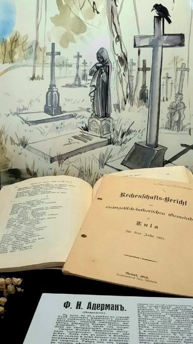 Тема возникла не случайно, ведь одним из устроителей лютеранского кладбища на Всехсвятском стал Ф. Г. Белявский (основатель и владелец “Старой тульской аптеки” и тех зданий, в которых сейчас располагается наш музей). Здесь в разные годы были погребены 8 человек из семьи Белявских-Адерман.