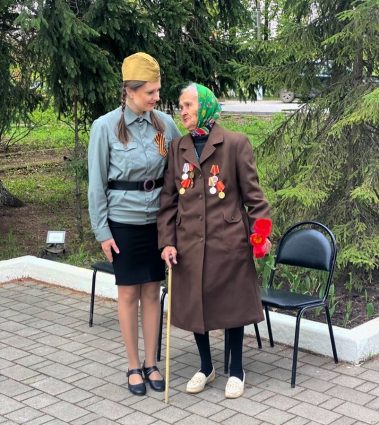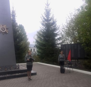 Сегодня труженица тыла Домарёва Варвара Фроловна и жители посёлка пришли почтить память тех,кто защищал нашу Родину в тяжёлые времена.