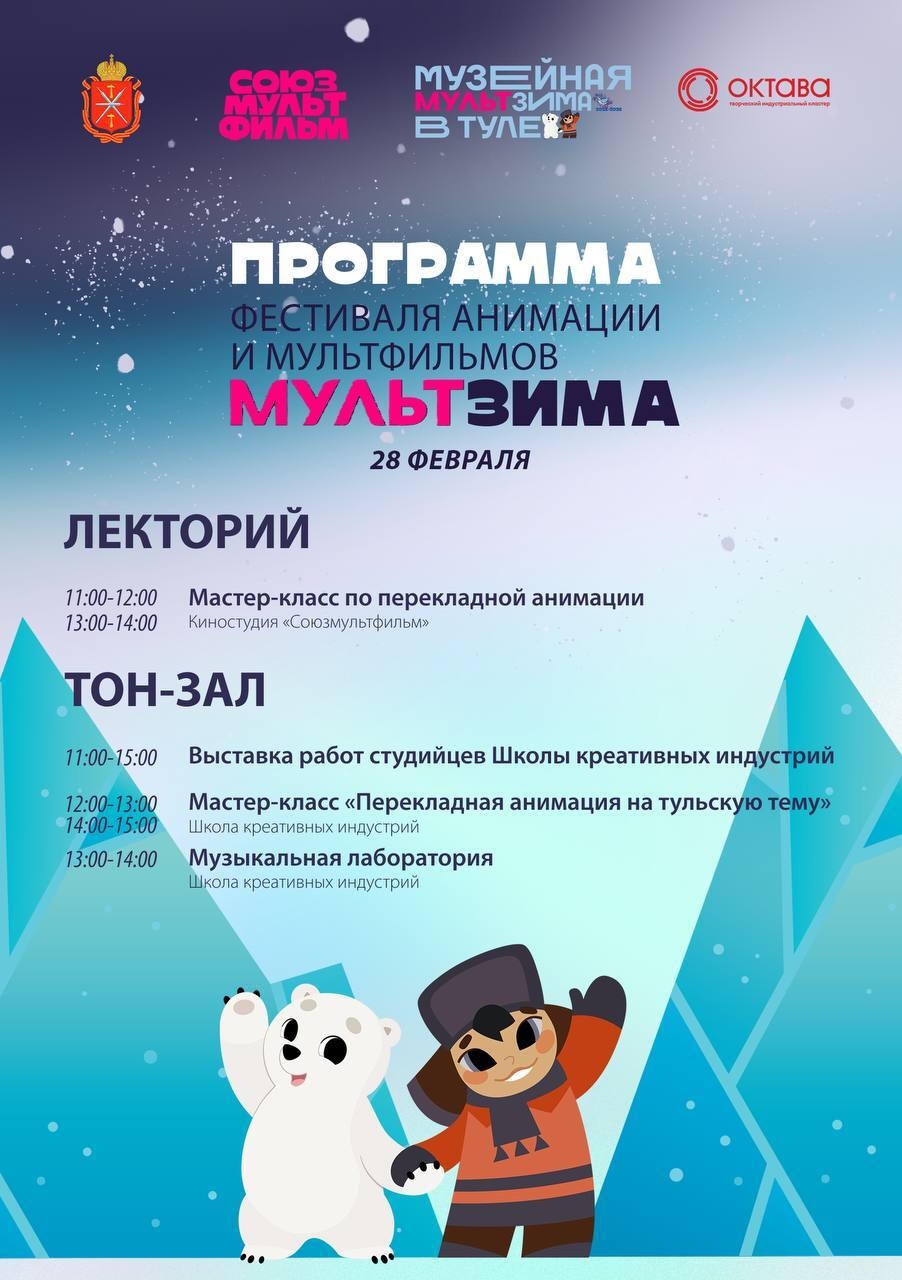 В Туле пройдет масштабный фестиваль анимации и мультфильмов “МультЗима”, который организован вместе с киностудией “Союзмультфильм”.