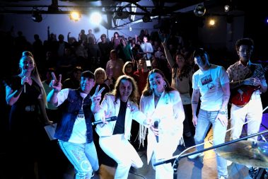Но тут зрители начали по одному и по двое вставать и спускаться со своих мест… Что такое? Они направились на танцпол! Да, впервые в нашем зале танцпол был забит настолько, что танцевали везде — перед сценой и по всему периметру зала, насколько позволяло пространство. Задние ряды прыгали, пели и размахивали руками.