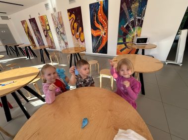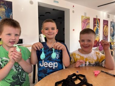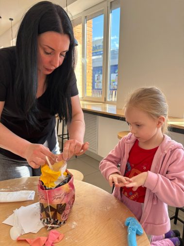В Центре временного размещения сотрудники Центра творчества “МИХАЛКОВСКИЙ” с ребятами из г. Белгорода и г. Курска делали забавную игрушку “Капитошка”