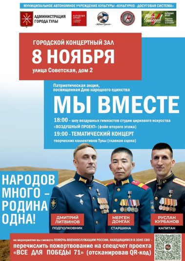 Мы приглашаем Вас принять участие в патриотической акции, посвящённой празднику #ДеньНародногоЕдинства , и поддержке воинов России, находящихся в зоне проведения СВО, “МЫ ВМЕСТЕ”