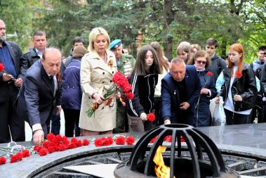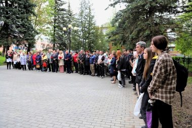 Участники митинга возложили цветы к мемориалу, почтили минутой молчания память погибших.