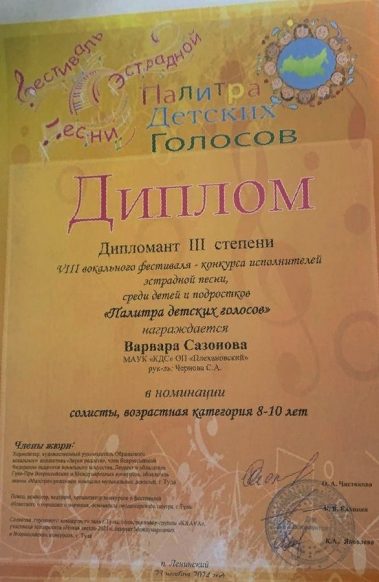 23 ноября участники студии сольного пения “Solo Next” приняли участие в VIII вокальном фестивале – конкурсе исполнителей эстрадной песни, среди детей и подростков “Палитра детских голосов”