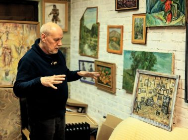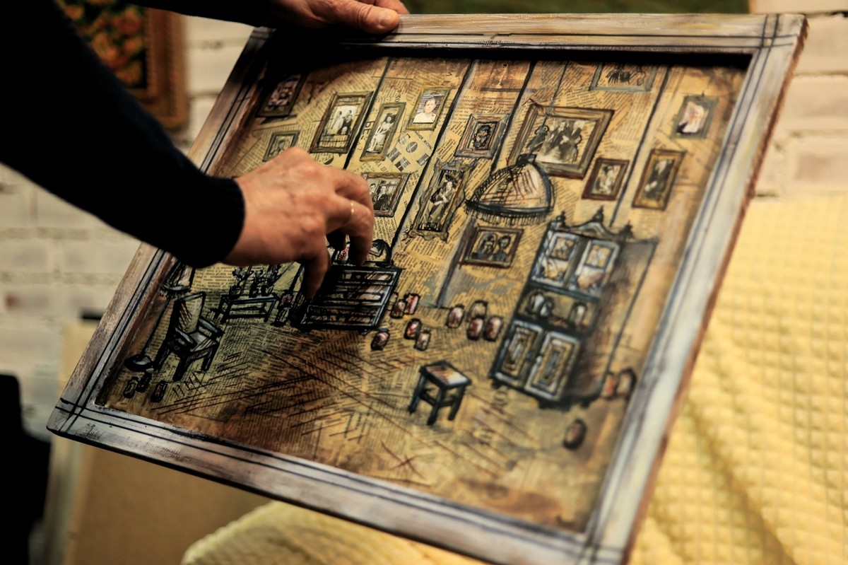 Сергей Александрович показал нам свежий эскиз декораций к спектаклю “Хватит делать выводы!”. Уже совсем скоро он обретёт объём, и всё задуманное можно будет увидеть на сцене.