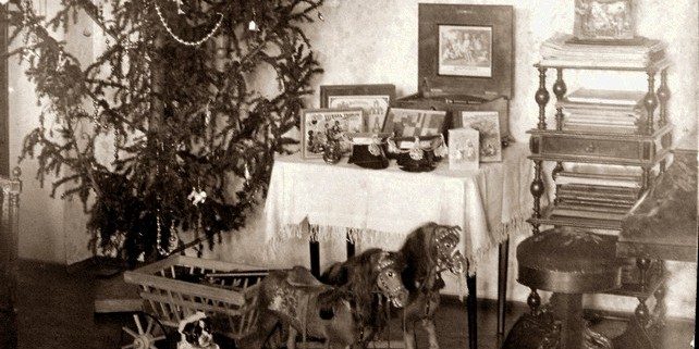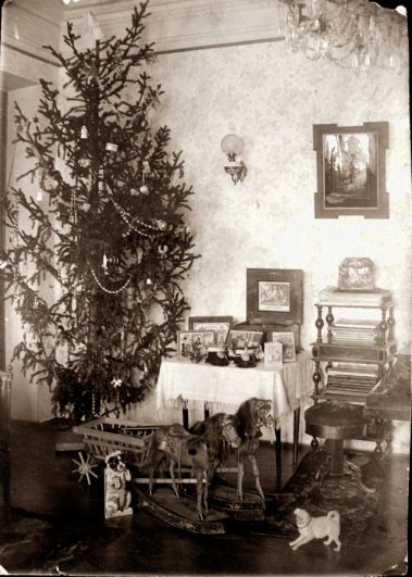 1. Вид гостиной на втором этаже дома Белявских. Рождественская ёлка. Конец XIX – начало ХХ века;