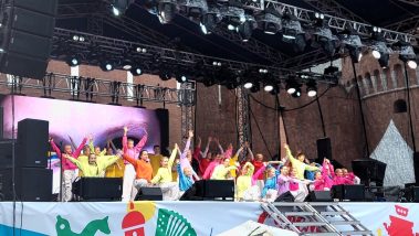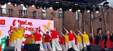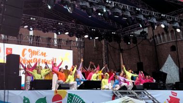 Одевшись ярко и празднично, соответственно прекрасному поводу, наши дети своим танцем создали прекрасную атмосферу для туляков!