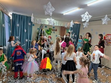 Красиво украшенный зал, нарядная ёлка, подарки, Дед Мороз и Снегурочка ожидали наших детей. Ребята погрузились в мир чудес, приключений, невероятных превращений и сюрпризов. Танцевали, пели песни, читали стихотворения, водили хороводы, с удовольствием участвовали в играх. Дети получили массу положительных эмоций и долгожданные подарки из рук Деда Мороза и Снегурочки.