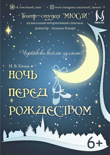 Если вы желаете вместе с героями сказочной программы окунуться в интереснейшее представление « Ночь перед Рождеством»,то мы ждём всех вас на наш новогодний спектакль,