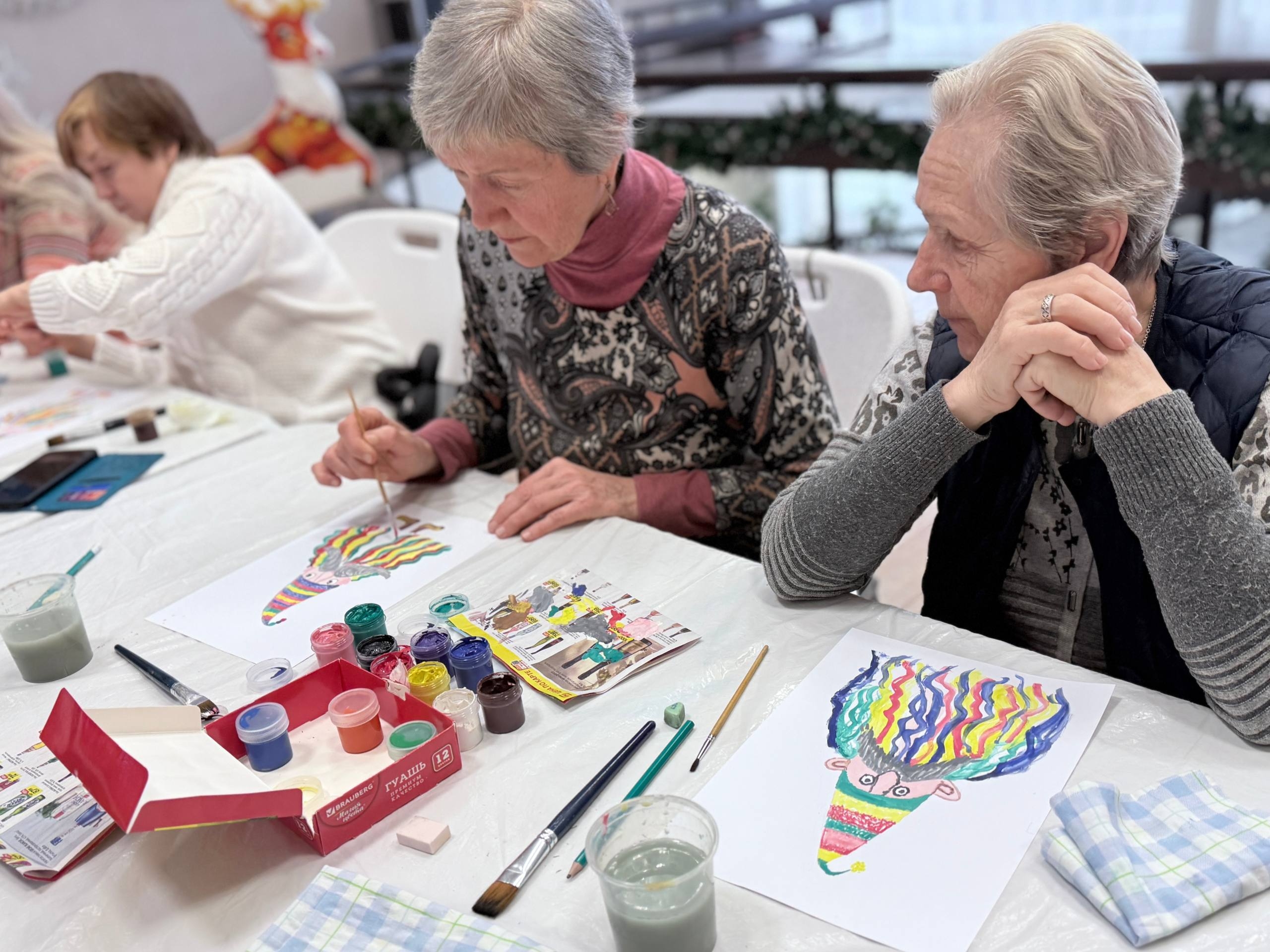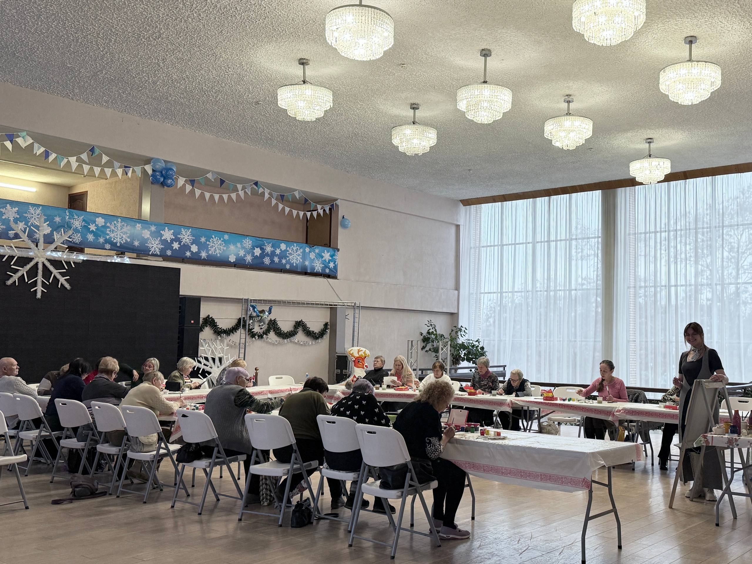 Сегодня в Городском концертном зале на мастер-классе пожилые люди рисовали очаровательных новогодних гномов.