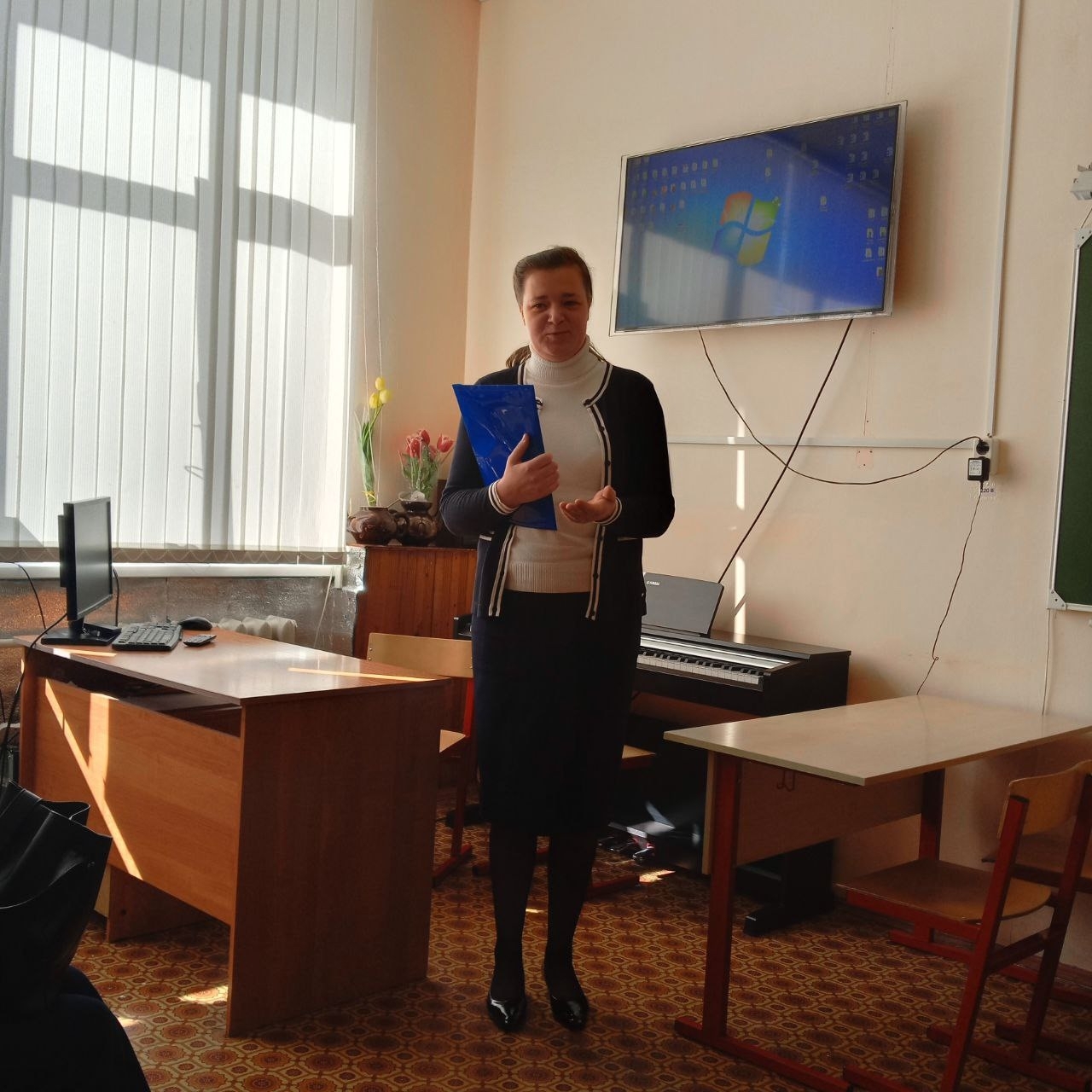 Она поделилась опытом создания в нашей школе комплекса итоговых экзаменационных материалов по сольфеджио и их практической реализацией на показе примеров из билетов устного экзамена для 8 класса в исполнении 2х выпускниц.