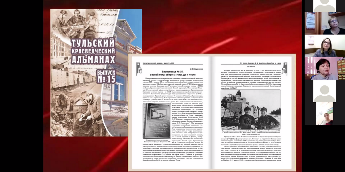 Организатор конференции – Тульская библиотечная система, участники: Керченская Централизованная библиотечная система, библиотека «Музей книги блокадного города» Централизованной библиотечной системы Московского района г. Санкт-Петербург, Новомосковская Централизованная библиотечная система.