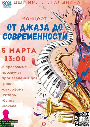 Детская школа искусств имени Г.Г. Галынина приглашает вас посетить концерт “От джаза до современности”