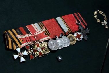 В экспозиции представлены реликвии военной истории из полковых музеев, офицерских собраний и личных коллекций. Один из ценных для нашего региона экспонатов — нагрудный знак 72-го пехотного Тульского полка.