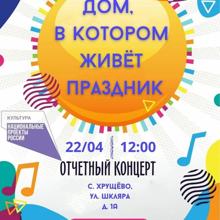 Мероприятие станет еще одной яркой страницей в красочной палитре культуры села Хрущево и принесет много счастливых, радостных минут всем участникам этого события: юным вокалистам и танцорам, родителям, педагогам, всем жителям и гостям нашего любимого села.