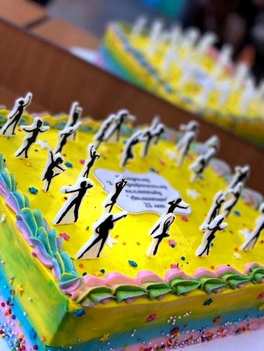 Сюрпризом для воспитанников коллектива стали медальницы, которые получили все юные танцоры, и конечно же именинный торт.