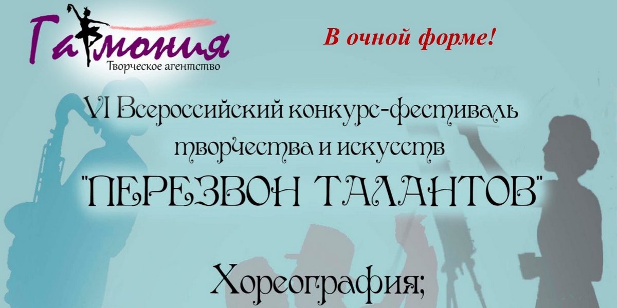 Открыт прием заявок на участие в: VI Всероссийском конкурсе – фестивале творчества и искусств “Перезвон талантов” в очной форме!