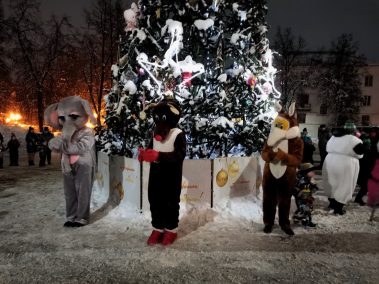 Сказочные персонажи веселились и играли с детьми. Гигантский хоровод, необычные игры, праздничное настроение и зажигательные танцы были сегодня в программе. И, конечно же, главный волшебник этого праздника – Дед Мороз.