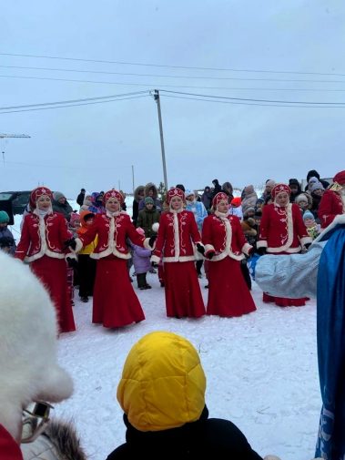 Румяные девчонки и мальчишки, а также их родители, принимали активное участие в конкурсах, играх, хороводах вместе с Дедом Морозом и Снегурочкой