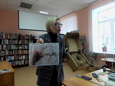 Открытие выставки провела методист нацпарка “Тульские засеки” Елена Николаевна Белякова. Она рассказала ребятам о цели создания парка, который находится в ведении Министерства природных ресурсов и экологии Российской Федерации. Елена Николаевна рассказала об обитателях этой особой, охраняемой территории, поделилась неизвестными подробностями о известных особях – белке, бобрах и др. Удивление вызвала история о воробьином сыче, маленькой птичке – хищнике, занесенной в Красную книгу Тульской области. С большим интересом ребята отгадывали слепки следов лесных животных, пытались идентифицировать голоса птиц, рассматривали снимки из фотоловушек. На память участникам мероприятия осталась стикеры и календарики от национального парка “Тульские засеки”.