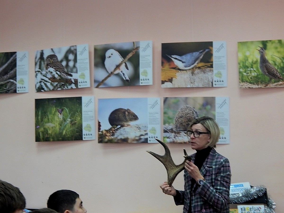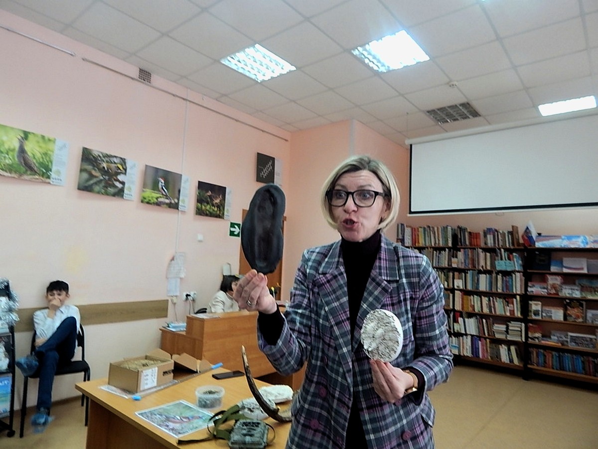 Открытие выставки провела методист нацпарка “Тульские засеки” Елена Николаевна Белякова. Она рассказала ребятам о цели создания парка, который находится в ведении Министерства природных ресурсов и экологии Российской Федерации. Елена Николаевна рассказала об обитателях этой особой, охраняемой территории, поделилась неизвестными подробностями о известных особях – белке, бобрах и др. Удивление вызвала история о воробьином сыче, маленькой птичке – хищнике, занесенной в Красную книгу Тульской области. С большим интересом ребята отгадывали слепки следов лесных животных, пытались идентифицировать голоса птиц, рассматривали снимки из фотоловушек. На память участникам мероприятия осталась стикеры и календарики от национального парка “Тульские засеки”.