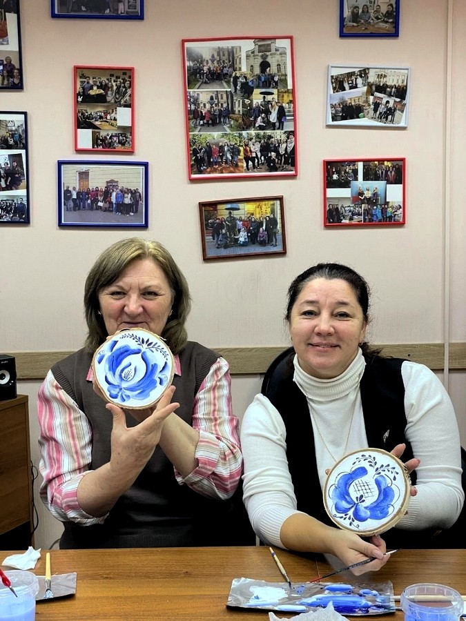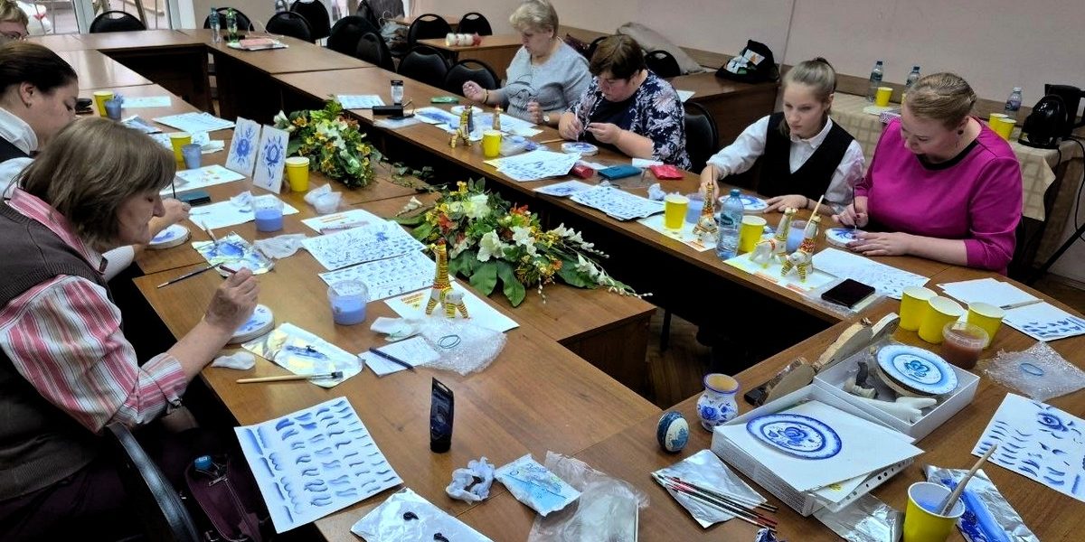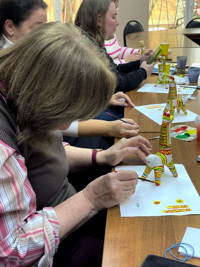 В ходе мастер-класса все участники выполнили роспись на деревянном спиле в стиле “Гжель” и расписали филимоновскую игрушку слепленную мастером К. Н. Кехаиди (г. Одоев), специально для проведения мастер-класса Евгении Сергеевны.