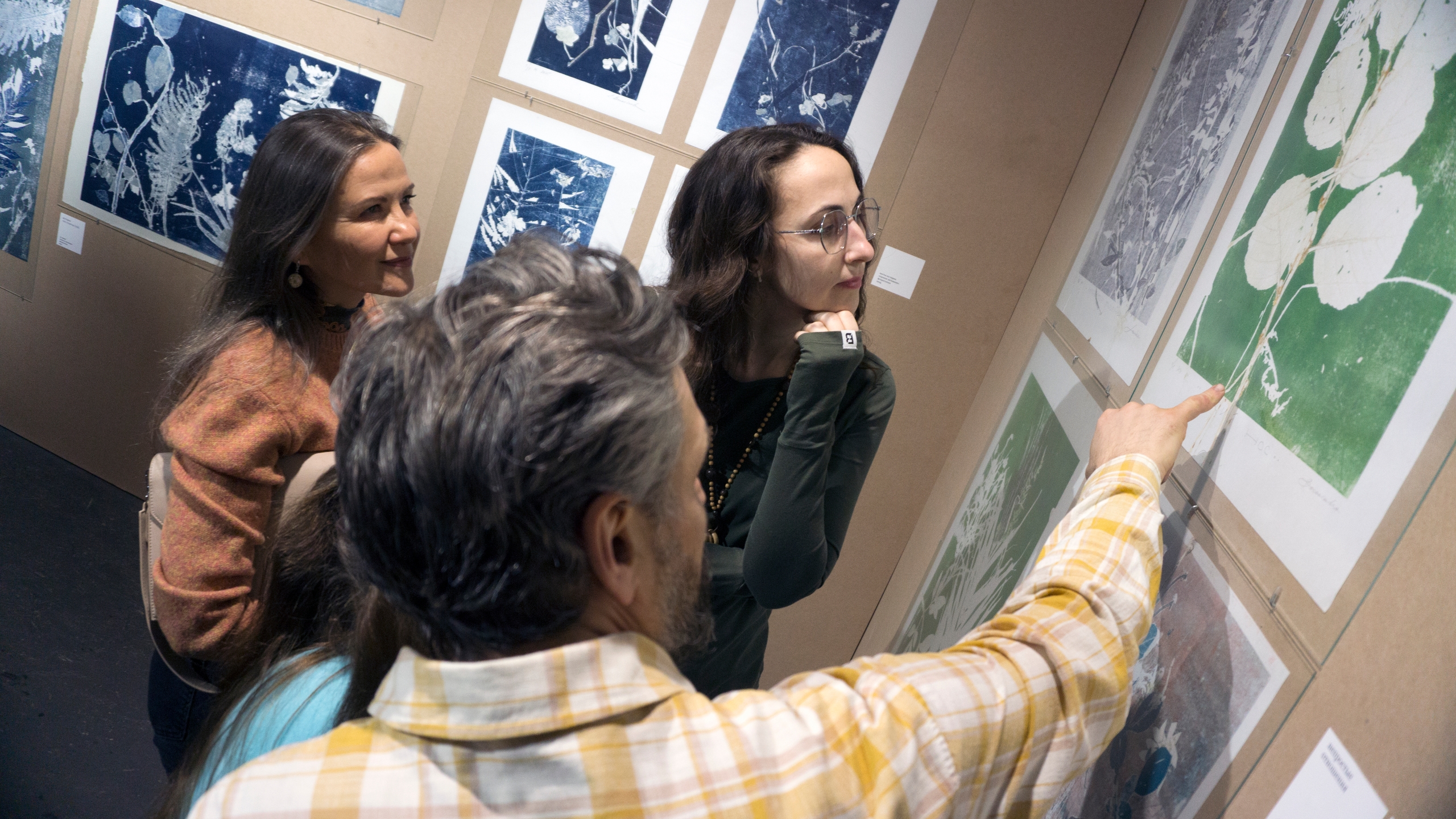 Напоминаем, на экспозиции в Доме Белявского представлено более 50 произведений Елены. Свои картины она создает в соавторстве с природой, применяя технику флоромонотипии, печати на винтажном текстиле и ботанической печати кипячением.