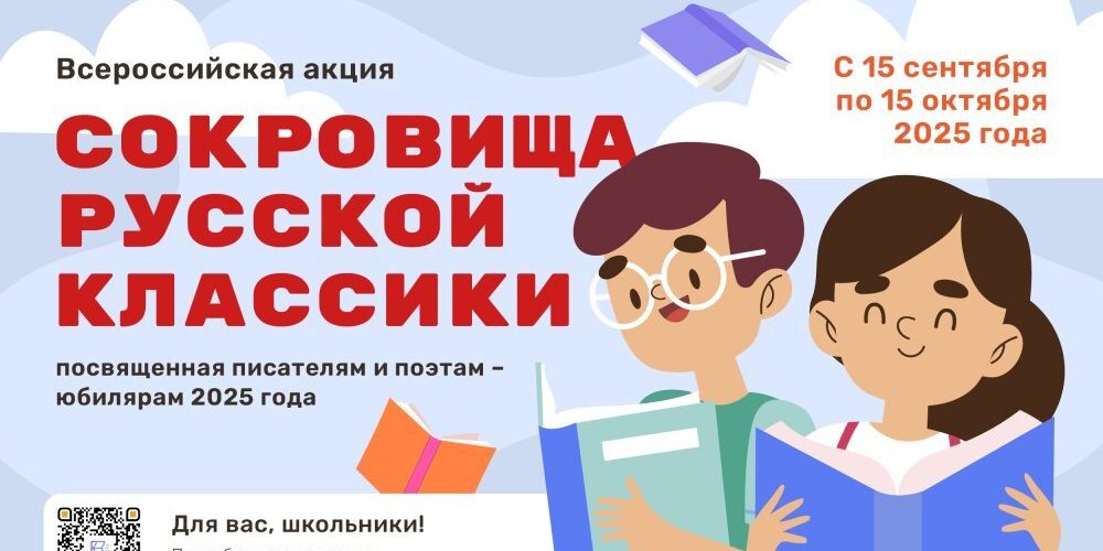 15 сентября 2025 года в рамках межведомственного культурно-образовательного проекта “Культура для школьников” стартует всероссийская литературная акция “Сокровища русской классики”, посвященная писателям и поэтам – юбилярам 2025 года.