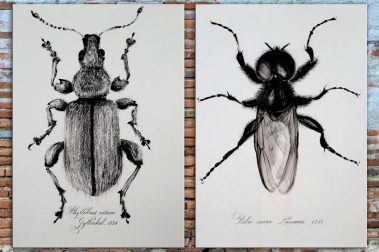 Армен Аганесов: “…мы … выбрали изображения наиболее эффектных из списка 75 видов. Однако постарались соблюсти представительство по видам: членистоногие, двукрылые и тд. Кроме того, насекомые представлены в разных техниках. Большая часть нарисованы кистью, акрилом и тушью”.