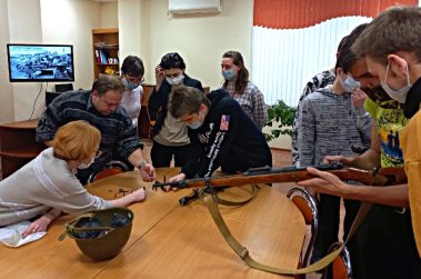 Легендарная оборона Тулы осенью 1941 года внесла неоценимый вклад в ход Великой Отечественной войны. Мужество и стойкость, проявленные защитниками Тулы, сыграли важную роль в разгроме немецко-фашистских войск под Москвой. Путь к столице был прегражден, враг понёс большие потери. Этим героическим событиям была посвящена встреча сотрудников библиотеки с учащимися Тульского государственного машиностроительного колледжа имени Никиты Демидова, на которую был приглашён заведующий филиалом «Музей обороны Тулы» Артём Викторович Зенов. В своём выступлении Артём Викторович освятил основные этапы оборонительной операции октября – декабря 1941 года, показал её значимости в ходе Великой Отечественной войны, рассказал присутствующим о земляках, проявивших героизм в суровые дни обороны города, раскрыл истоки патриотизма героев-туляков. Блестящее выступление нашего гостя сопровождалось кадрами хроники, а также демонстрацией макетов оружия и показом личных вещей участников тех лет. Не осталась в стороне и литературная часть встречи – о творчестве тульских поэтов-фронтовиков присутствующим рассказал главный библиотекарь сектора читального зала Бабенко Александр Николаевич.
