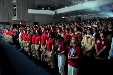 В исполнении образцовой вокально-хоровой студии “Звонкие капельки” и музыкального театра Тульского суворовского Военного училища “Эполет” прозвучала песня “О той весне”