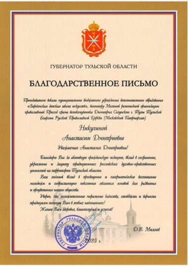 Среди награжденных – преподаватель Зареченской детской школы искусств НИКУЛИНА Анастасия Дмитриевна. Поздравляем Анастасию Дмитриевну с этой высокой наградой и желаем новых творческих достижений и побед!!!!