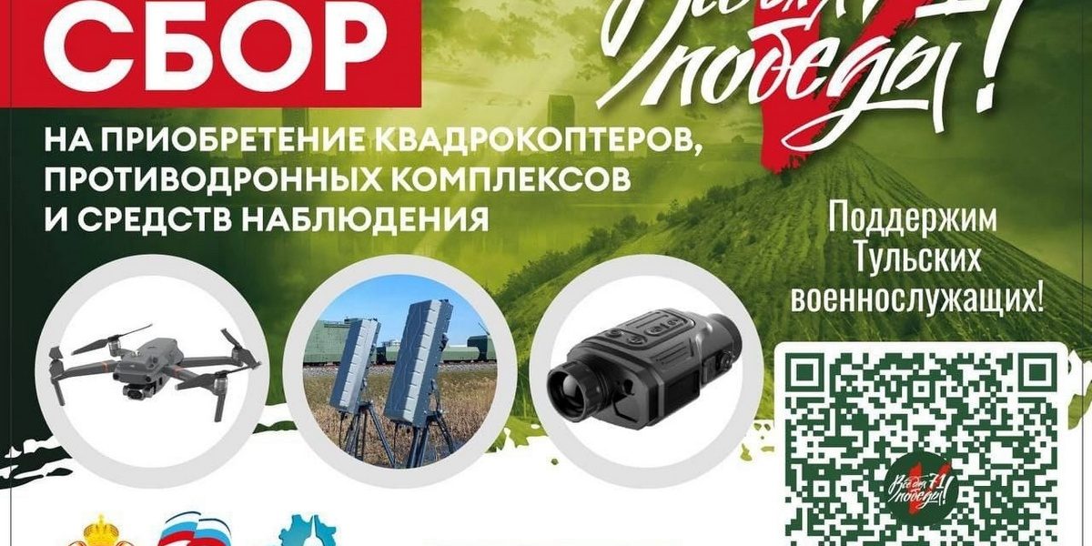 В рамках акции “ВсеДляПобеды71” объявлен региональный сбор на приобретение средств радиоэлектронной борьбы (РЭБ), тепловизоров и приборов ночного видения!