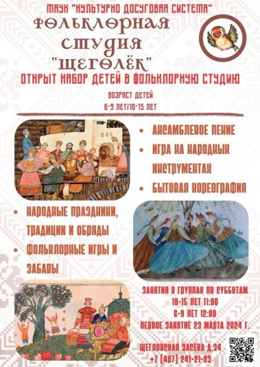 Наши профессиональные преподаватели помогут раскрыть творческий потенциал, научат исполнять народные песни и танцы, а также познакомят с уникальными инструментами!